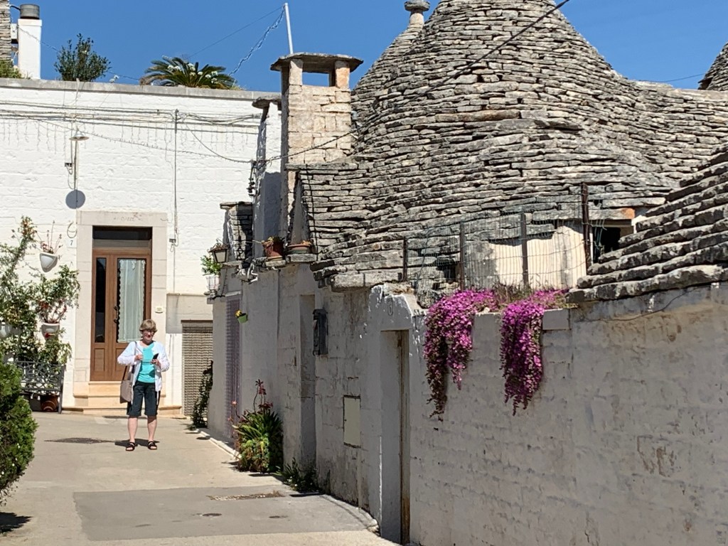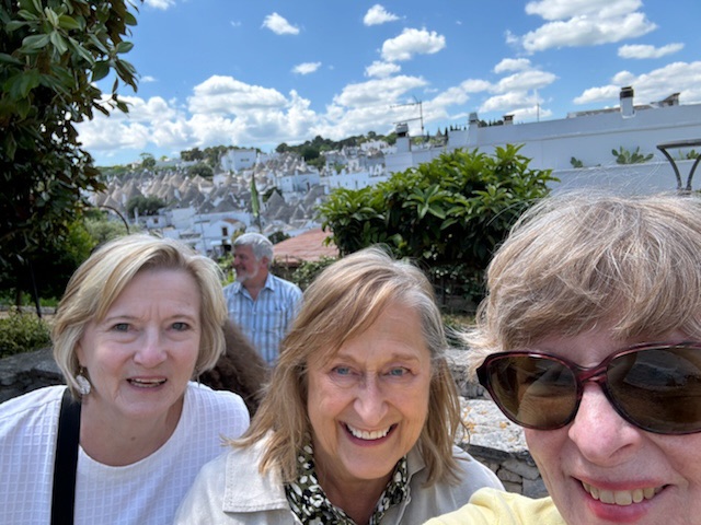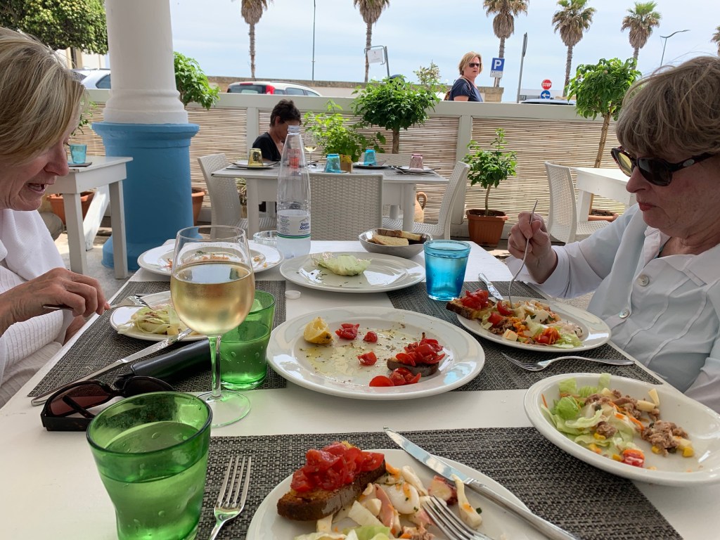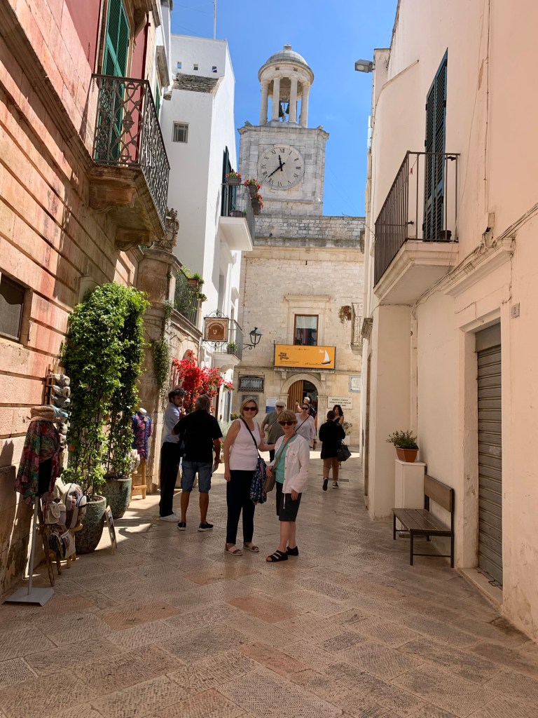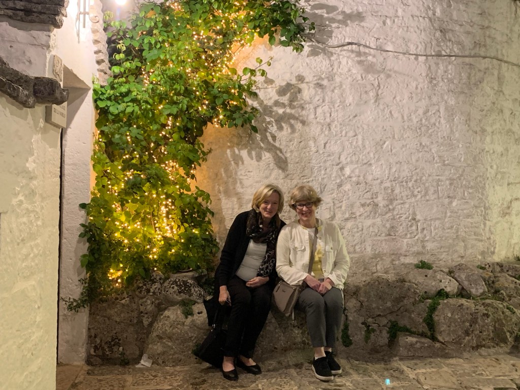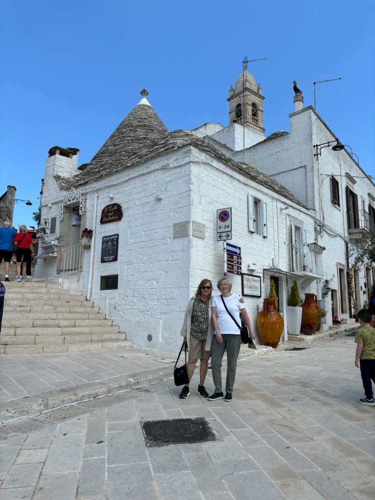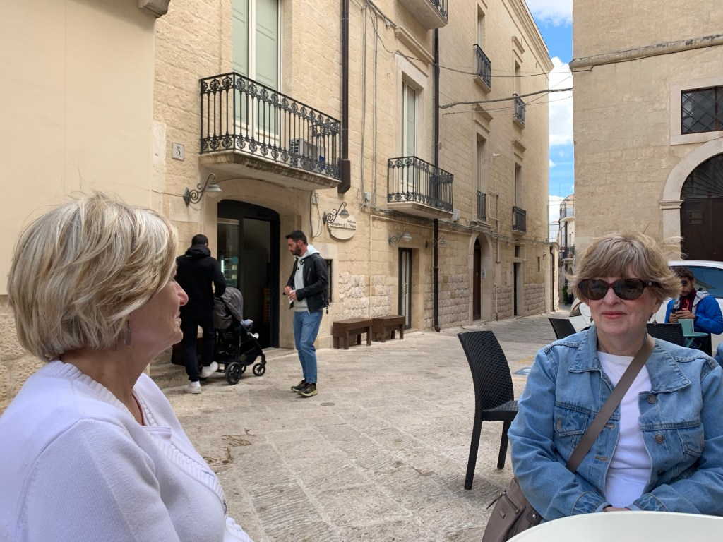 It was a long but trouble-free travel day! No hitches on our three flight/airport journey to Bari – our entree to the Puglia region or the heel of the boot. Our luggage arrived with us (even Mary’s) without needing to employ our Air Tags! And we’ve found friendly, helpful Italians along the way.