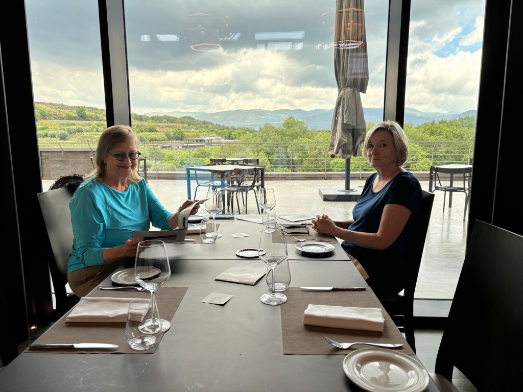 And of course a wonderful lunch – Mary found a delightful regionale white wine in the land of reds!