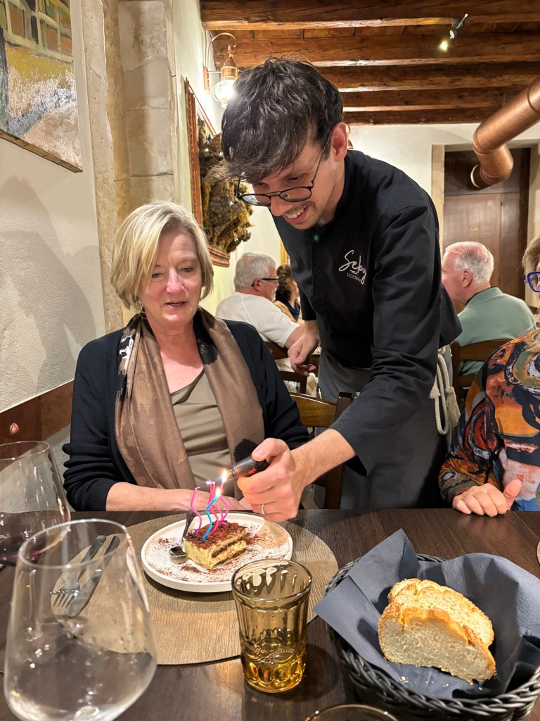 Mary provided us a reason to celebrate!!! Her birthday was today (May 12th – apologies for the blog delay) and it needed to be as special as she is. That takes a little doing in Italia, but we had a fun time with it!