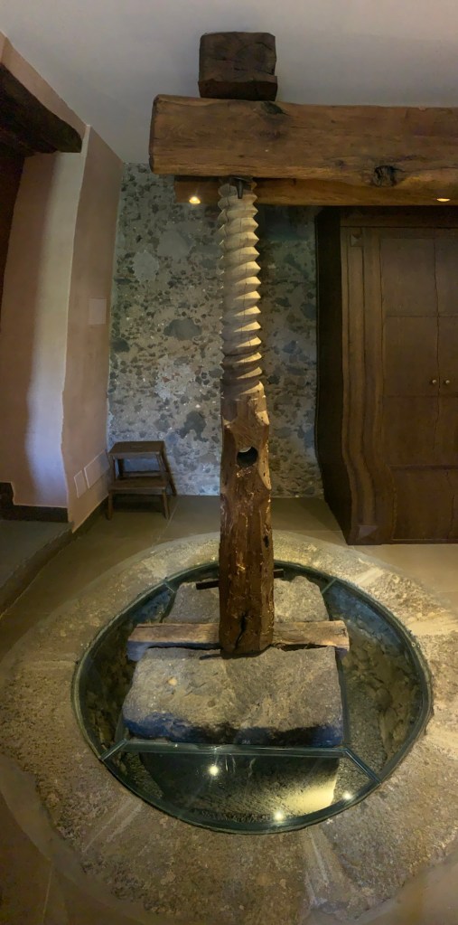 Our room holds some of the features of the “palmenti ” or old stone building used to crush and store grapes out of which it is carved. This is a vineyard with history.