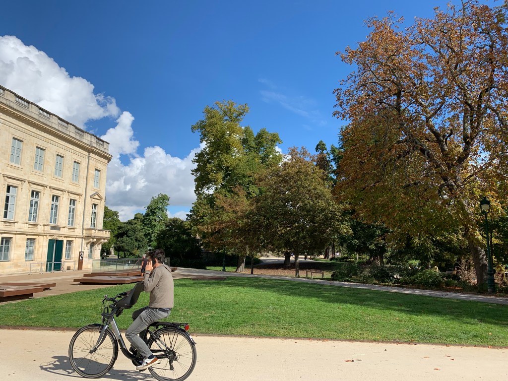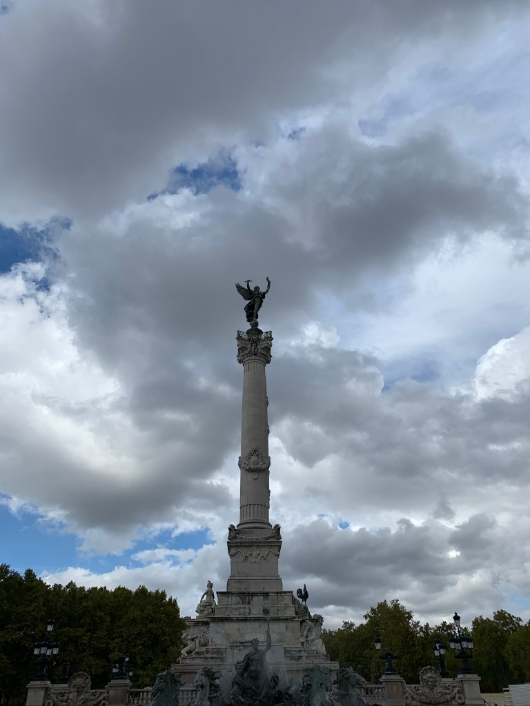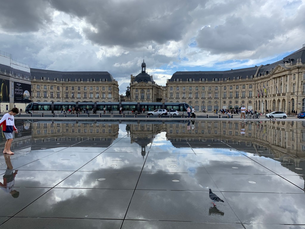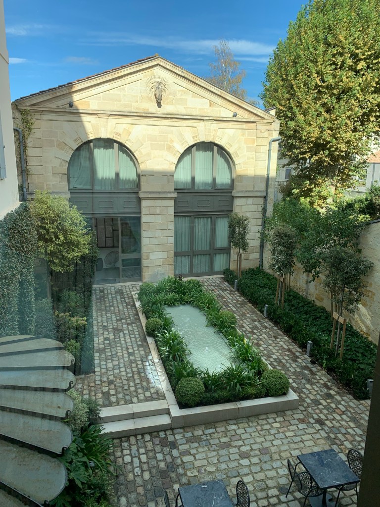 Change in seasons, change in cities. Off to Bordeaux- the wine destination of Genes interest! Our travel goes well and we find ourselves staying within easy walking distance of the main place (plaza) where I’m sitting in a tranquil courtyard with water feature.