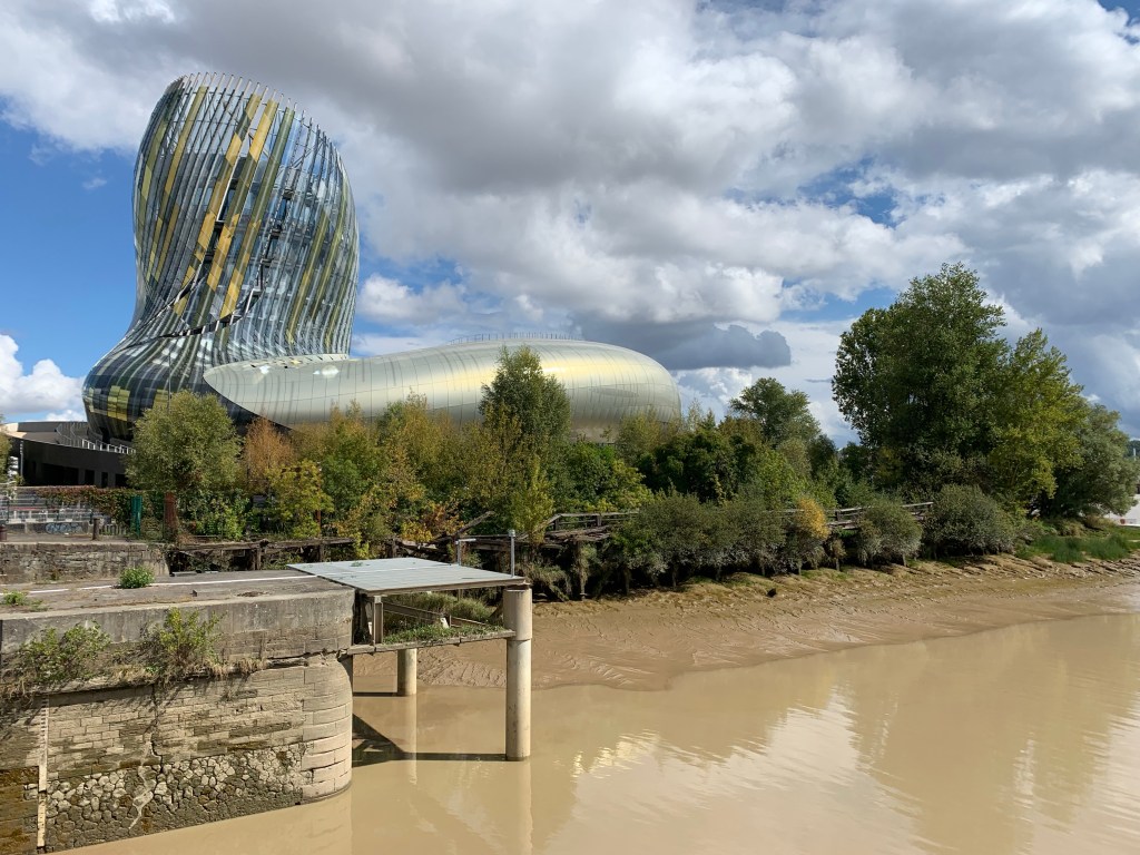 The Musee of Wine is in what looks like gentrified dock lands on the “blonde” Rive Garonne. It’s heavily silted and the color they describe as “blonde” is caused by the confluence of the ocean estuary and river merging.