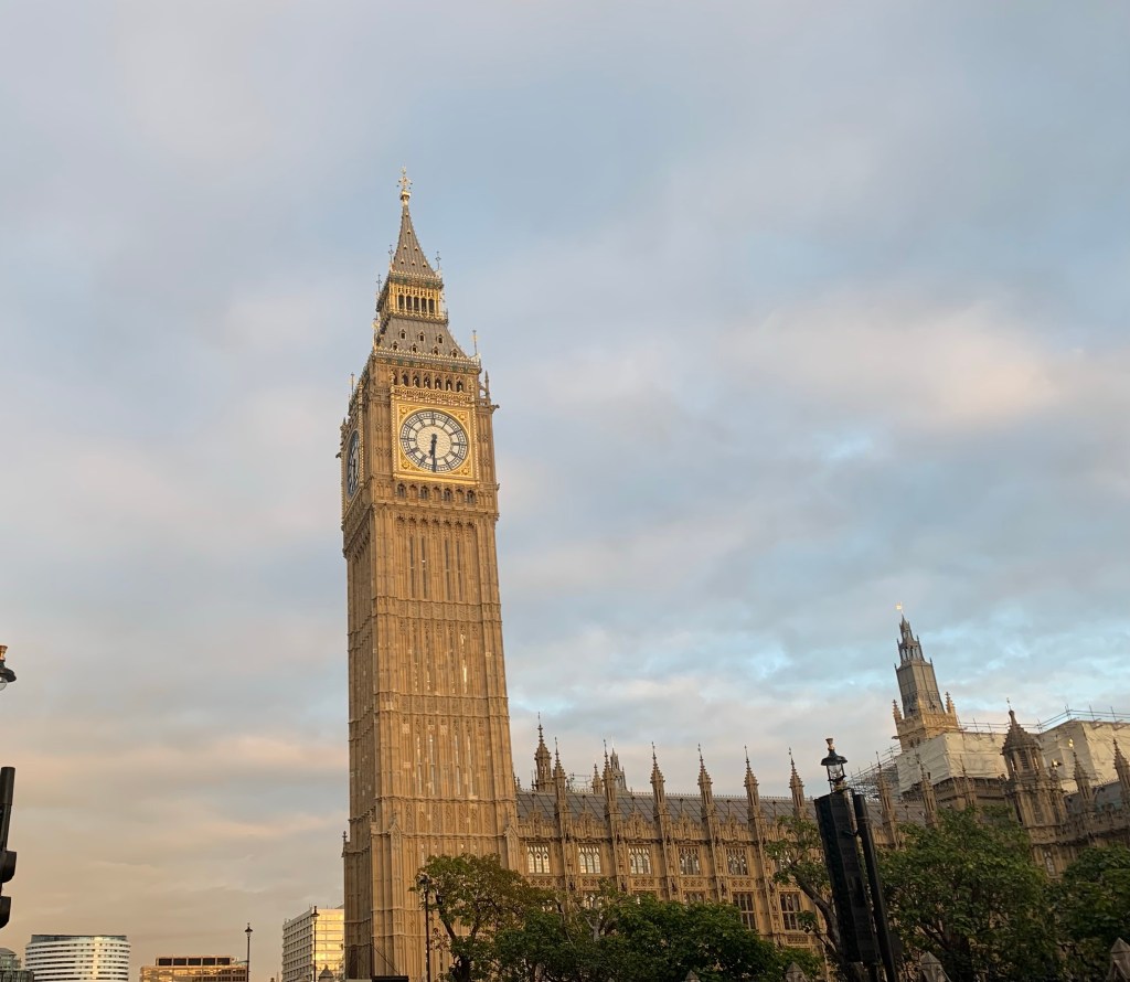 Big Ben in evening light. We’re feeling lucky at the lack of rain so far!