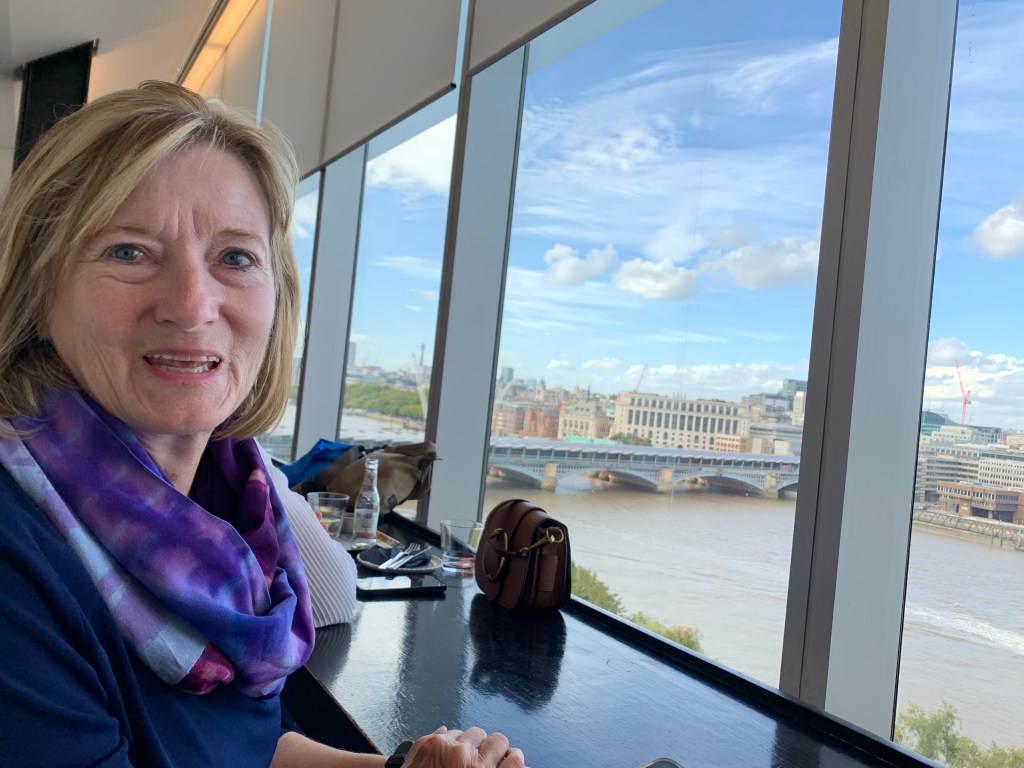Barbican – An area I’m not sure I’d even heard of before! And it held some mysteries we didn’t explore, but we were invited there to have lunch with my friend Kaly Soto. Briefly saw her third floor flat and had lunch nearby before that rain that caught us on the way to the Tate set in. She has a lovely little Italian place in her immediate neighborhood (Vecchio Parioli) that provided a chance to chat and catch up with her (she now edits the NYT foreign desk since her arrival from NY just before the world hit Covid shutdown and with prescient aplomb suggested the new PM/Liz Truss would be “run out of town on a rail”). She seems every bit herself still. I enjoyed seeing her. Kaly has always been generous to me since I met her through Vicki.