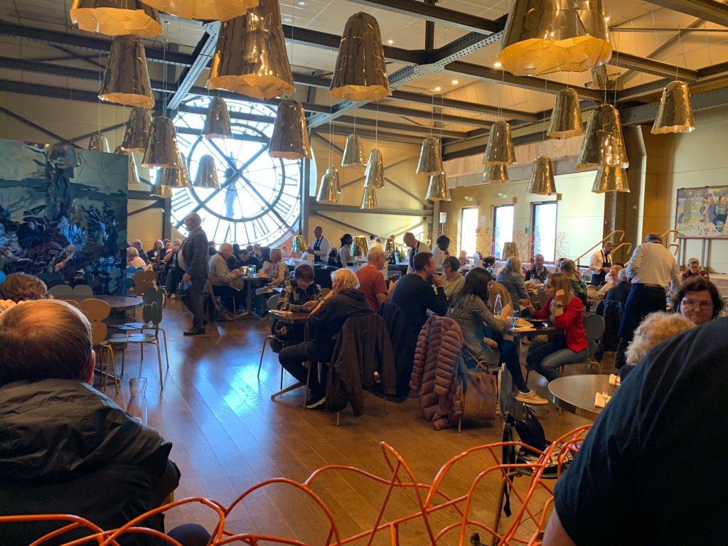 Back to Paris for the final few days of Together In France, though Gene is enjoying the trip through Mary’s eyes now. We used Eurostar through the chunnel which turned out great, though there was no perceptible or lengthy period of under ocean travel. Really kinda mundane for such an engineering feat. Our experience was much enhanced by Mary’s approach to agent Stephane upon arrival to St Pancreas Station. We were early, quite early, to be cautious about possible National Rail strike influence and observe the recommended arrival time. When Mary showed Stephane our ticket he quickly took us to Priority Class, booked us on an earlier flight and moved us to that security line. We were golden!!