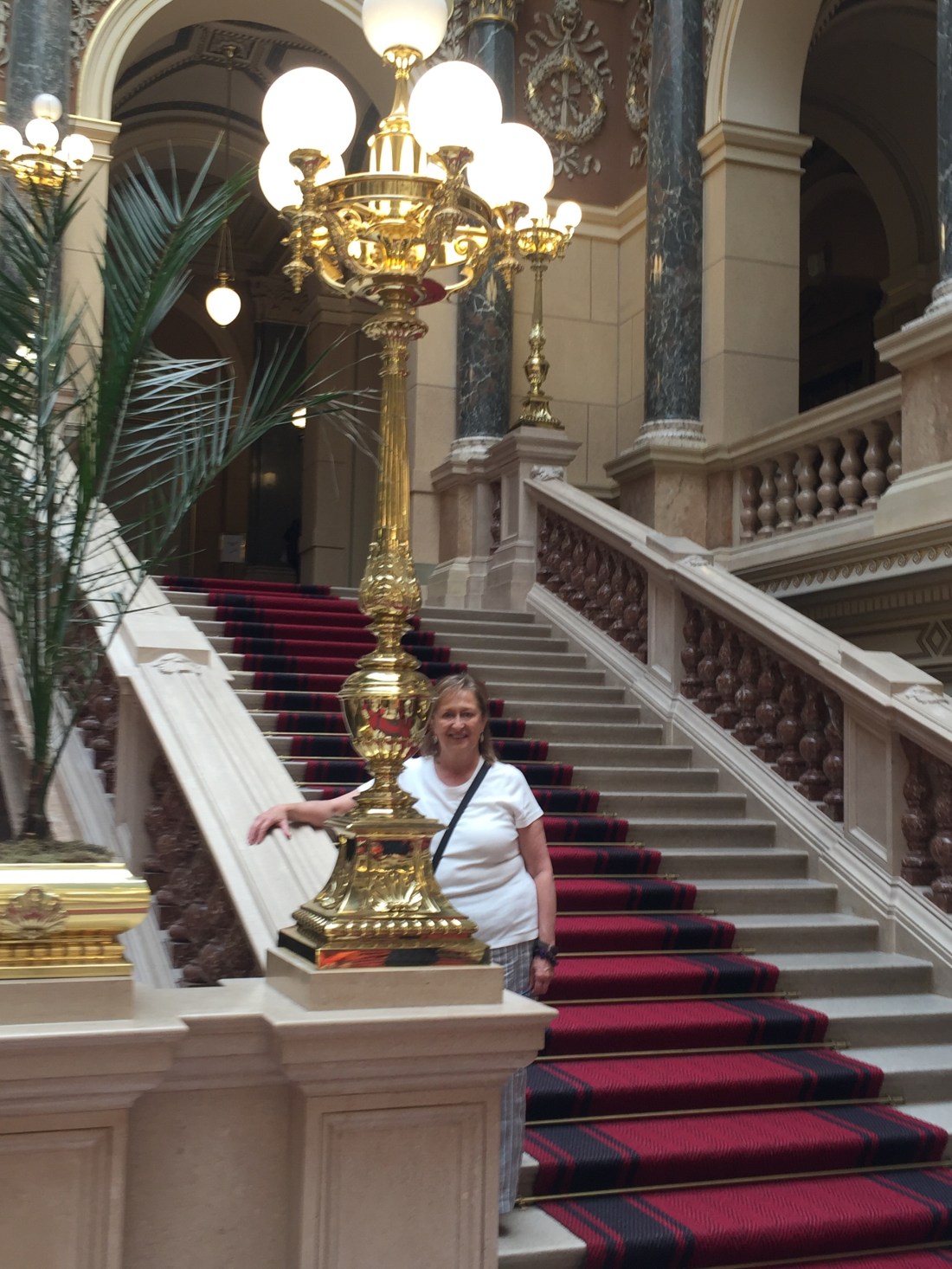 We got ourselves on public transit to Margit Island and were drenched in an afternoon thunderstorm on the way back into Pest. Not to be deterred, we went to the Opera House. It’s less than a block from us and they didn’t seem to mind we looked like drowned rats……..