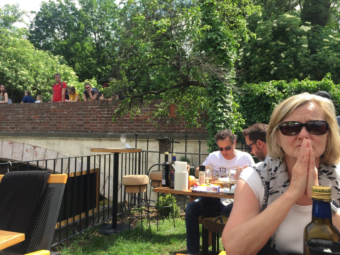 This was a more artisan area after you got off the main street at the St Charles Bridge. Some quiet parks and residences. And this nice place to watch the world go by from.