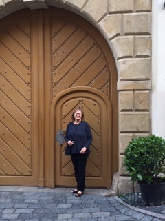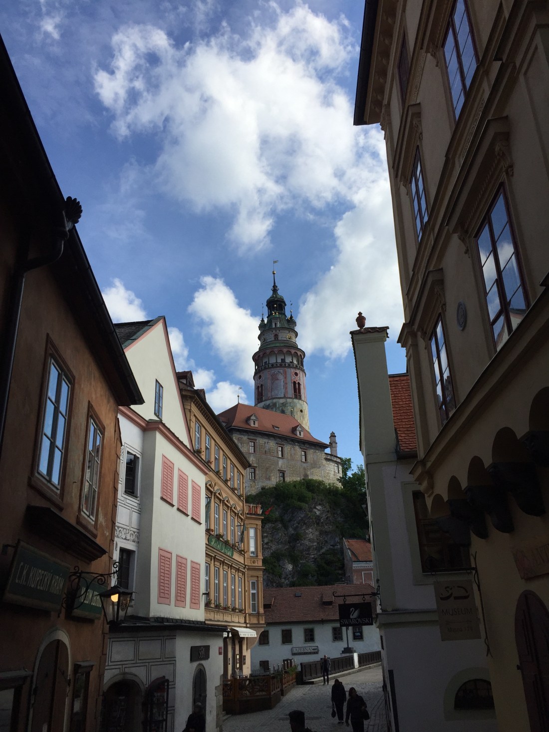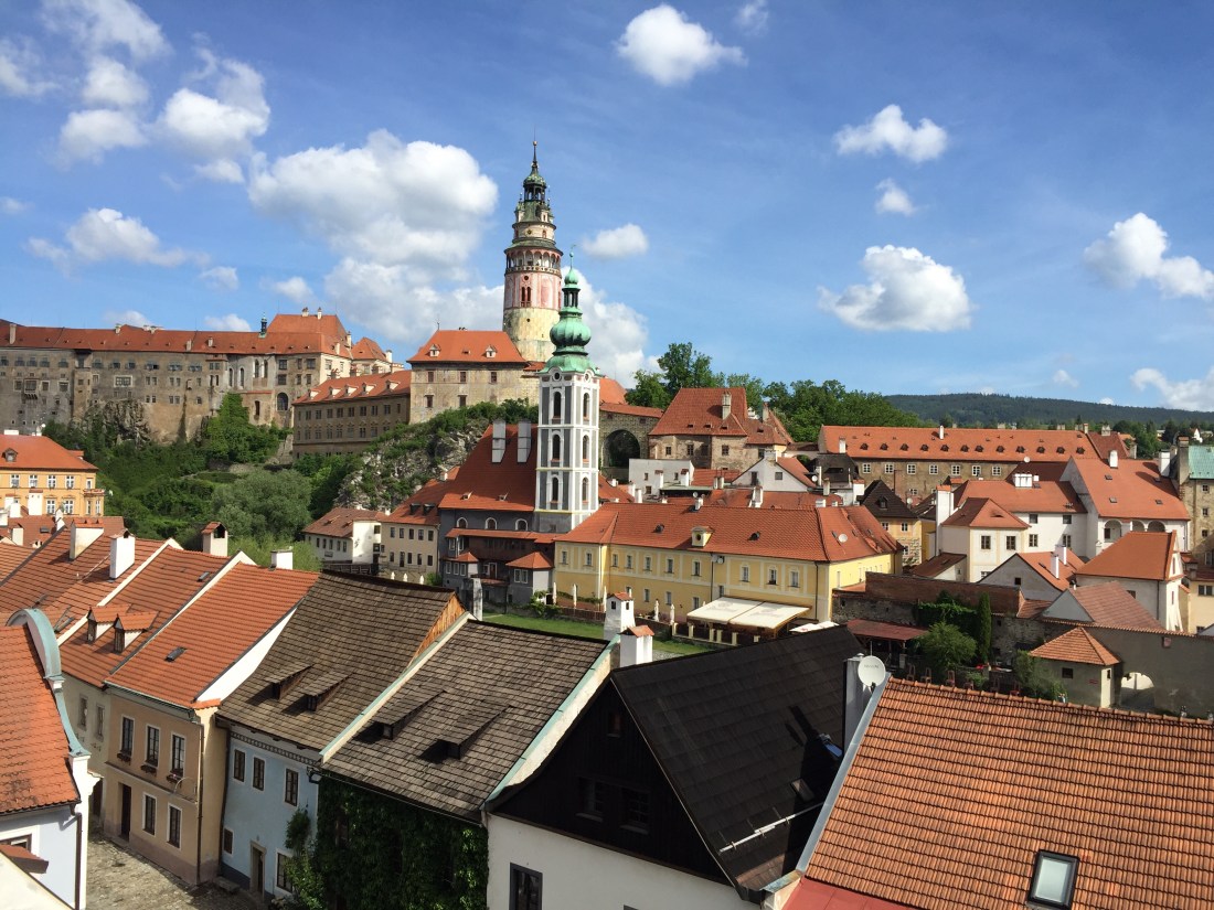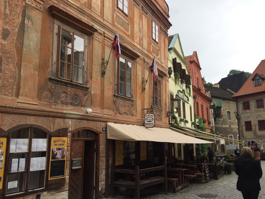 Off to Cesky Krumlov a medieval UNESCO world heritage city, but not until a plump Czech dressed characterization of a hotel manager gave us a special Hotel Hastal coin for our departure and Mary and I gave him an earful about the WiFi. He played dumb (he has to have known) and eventually followed Mary around to give her $20 (that’s about 450cz). Hrumph.