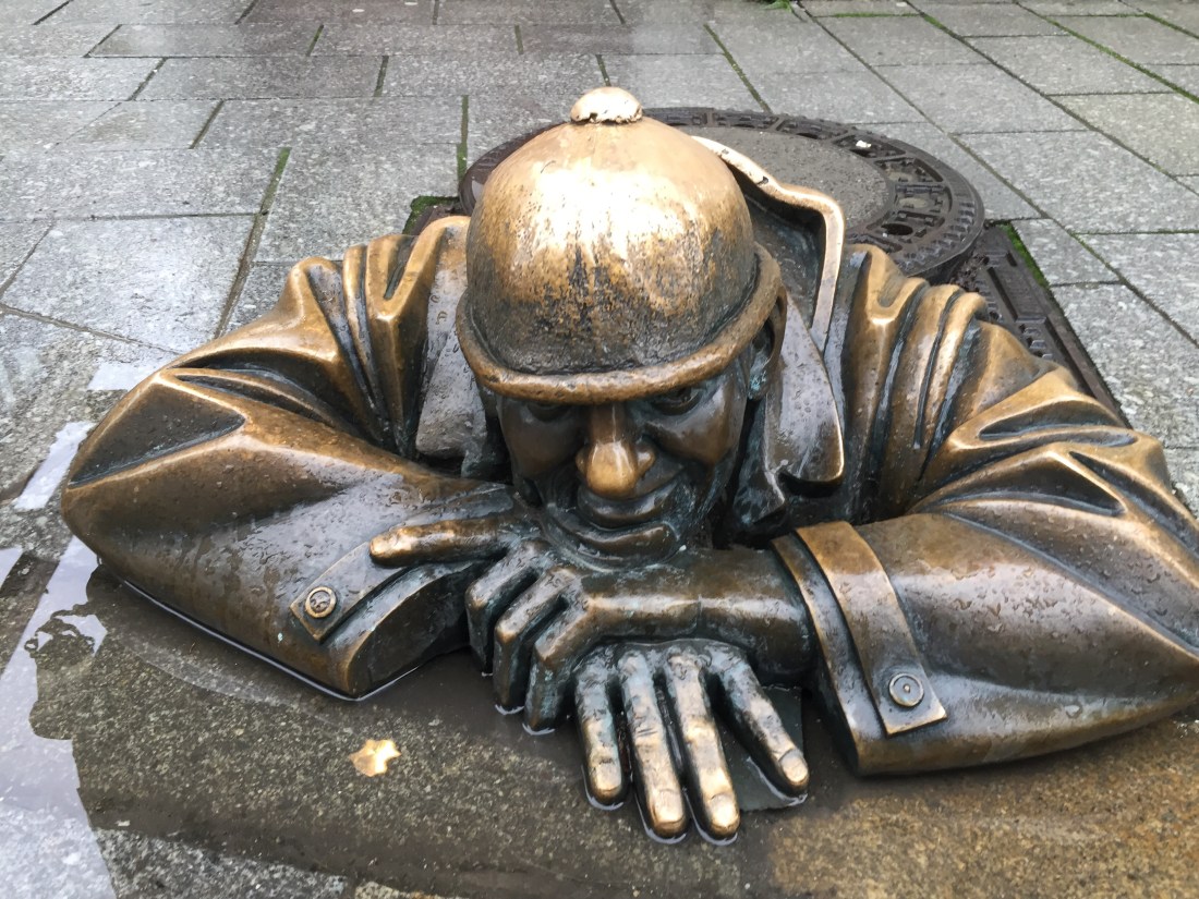 And we found his friend on the square, Cumil (the peeper), who has no history – just an artists whim and our imagination.