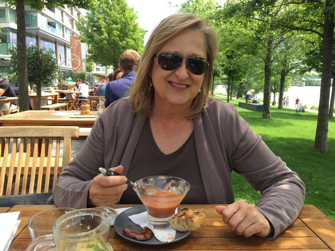 And then we crossed the river to have a lovely lunch and gorgeous view from the Manu Restaurant. It sits on an island in the river. We were treated to our lunch by Ron and Else Nichols who had been here just months ago! Special!