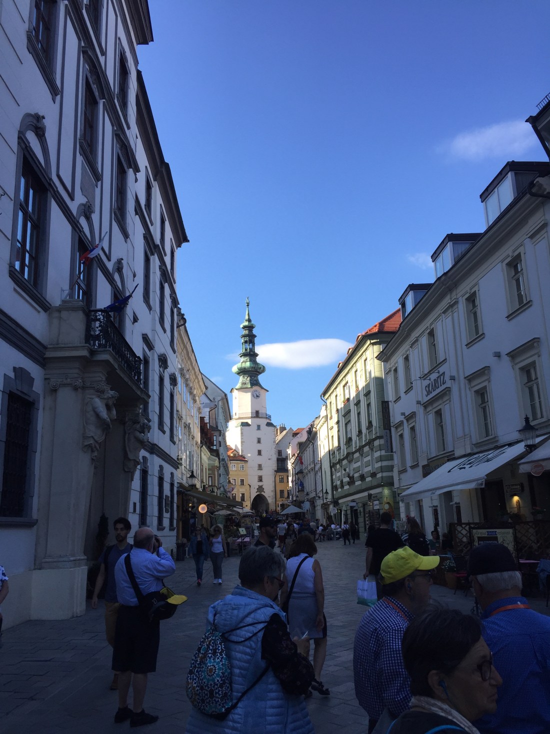 Bratislava is, we read, a new and hip destination as it restores its old town and looks to the future. We’re excellently situated just inside St. Michael’s Gate (Mary and Rick Steves chose the place) and we’re looking forward to tomorrow.