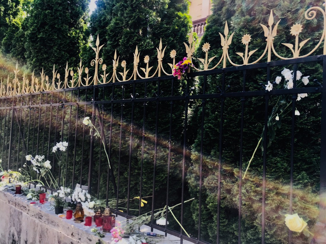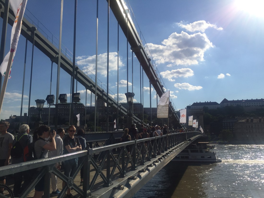 We walked by the South Korean Embassy early today. It is enshrined with flowers, candles and poems for the victims of a Danube evening cruise that capsized just before our arrival. At the time of this writing seven are hospitalized, seven are dead and the others of the 33 South Korean tourists and two boatmen are missing, presumed dead. The Danube is cold this early in summer and currently burgeoning- so swift and dangerous for smaller boats. It happened near the Parliament building. Victims/bodies were found up to two miles away. The Chain Bridge also has flower remembrances on it.