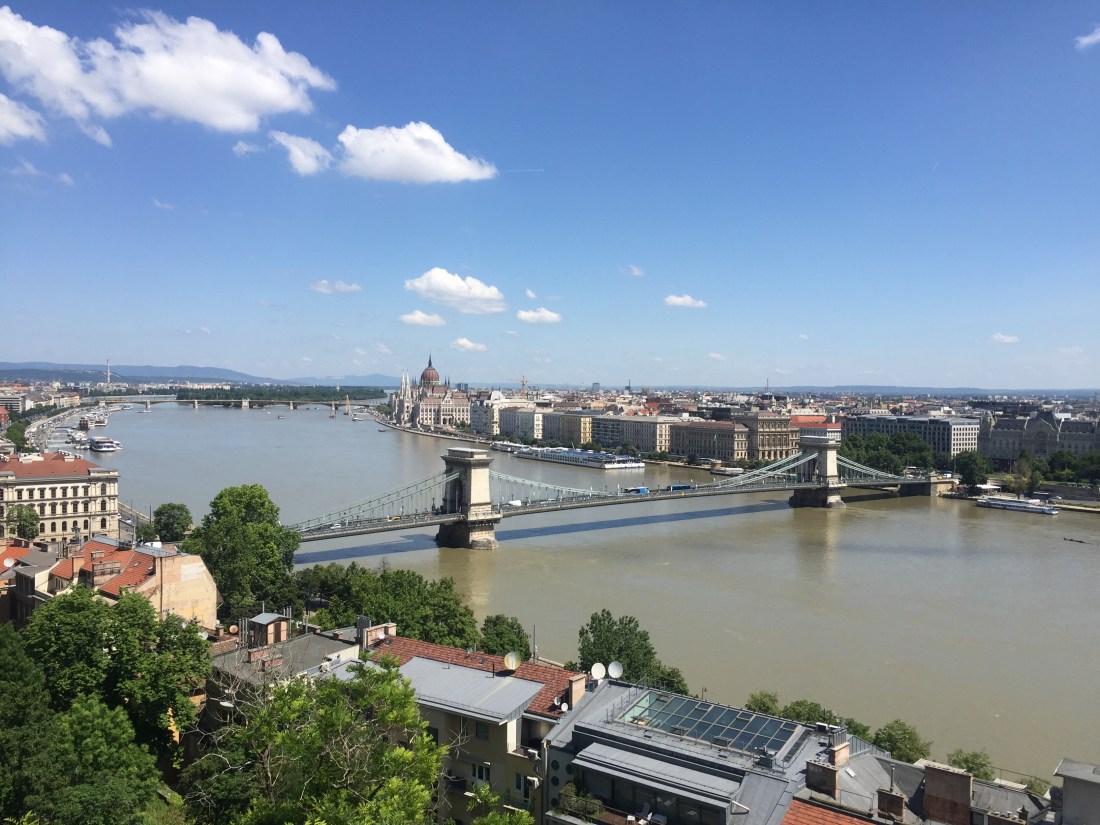 Headed to Castle Hill and the Royal Palace on the Buda side of the Danube. It was a gorgeous morning, destined to be 80ish with an 87 humidity index. But it made for spectacular views against the kek (blue) sky.